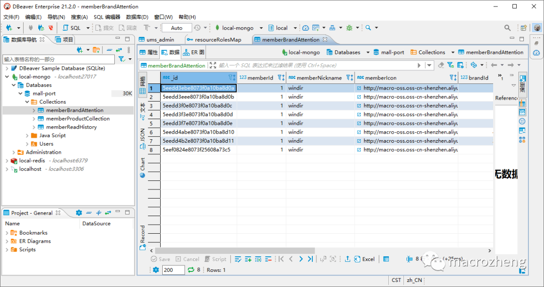 - 创建MongoDB连接后也可以管理MongoDB中的数据。